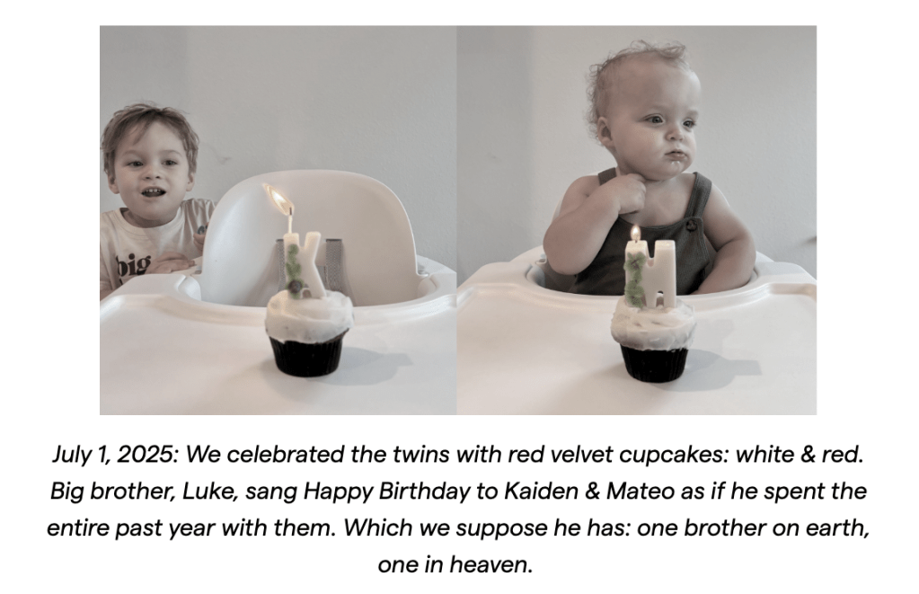 Writing this has reinforced what I realized earlier this year: I do not remember portions of July 2024 – July 2025. Apparently that is what grief does to your mind & memories. I feel a certain guilt much of the early days of Mateo’s life or Luke’s prime toddler days are a fog; I also feel relief that same fog encompassed some of the darkness after Kaiden’s death.